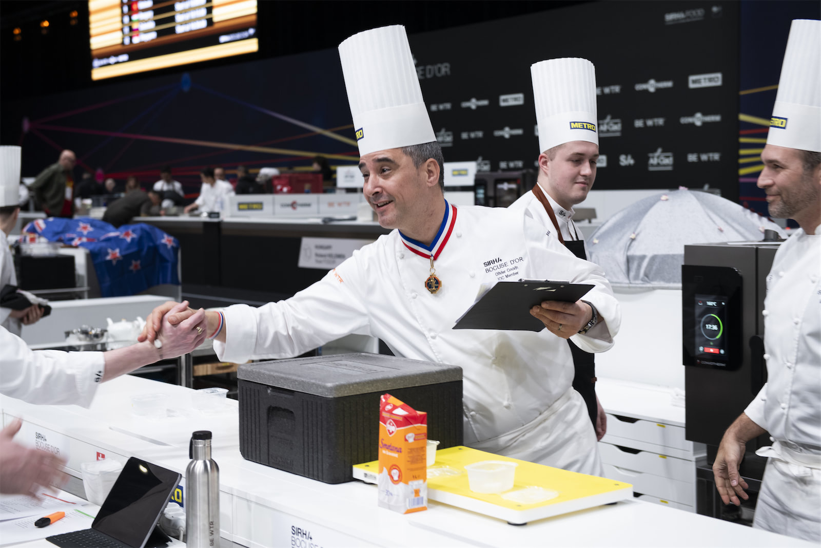 Počas súťažného dňa prišiel slovenský tím Bocuse d’Or @bocusedor osobne podporiť aj mimoriadny hosť – slovenský veľvyslanec vo Francúzsku Ján Šoth z Veľvyslanectva Slovenskej republiky v Paríži @institutslovaqueparis . Jeho prítomnosť bola pre tím veľkou podporou a krásnym symbolom toho, že slovenská gastronómia má svoje miesto aj na medzinárodnej scéne.