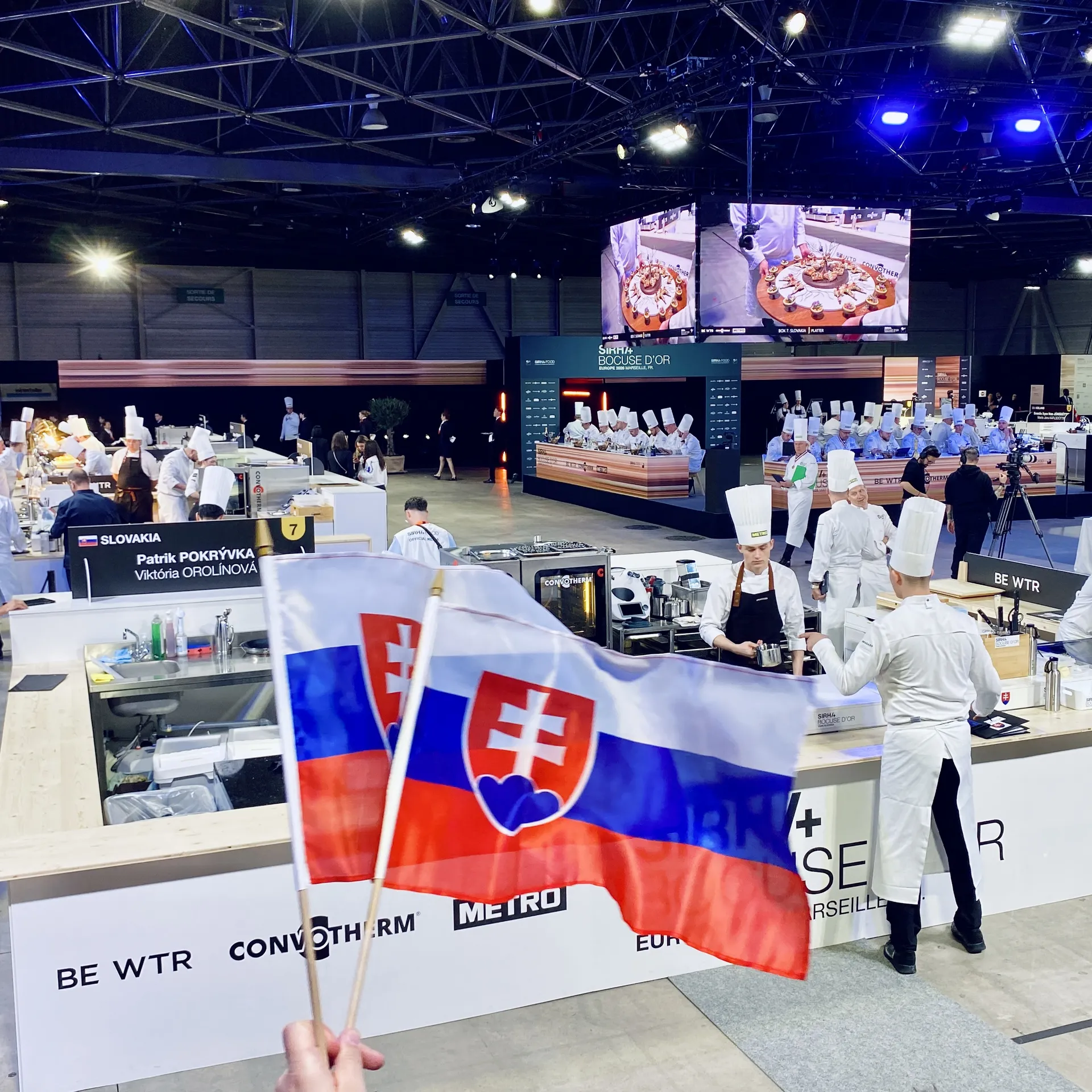 Takáto podpora dodáva tímu energiu a pripomína, že na pódiu Bocuse d’Or Europe nereprezentujú len seba, ale celé Slovensko. 🇸🇰🔥